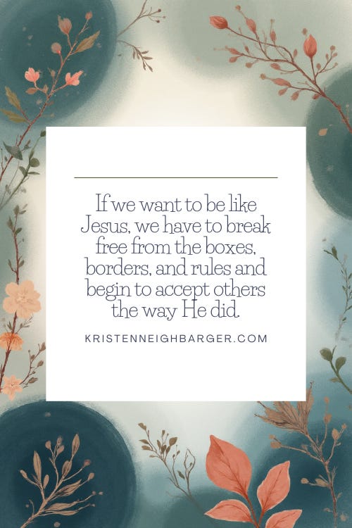 If we want to be like Jesus, we have to break free from those systems and begin seeing and accepting others like He did—without questions, hoops, or forced assimilation.