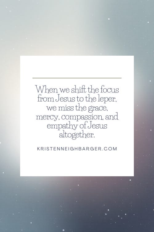 When we make this story about the leper instead of Jesus, we miss the grace, mercy, compassion, and restoration Jesus reveals.